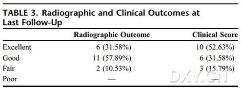 在股骨頭壞死方面,本研究中的19例患者,僅有一例傷后16個(gè)月時(shí)影像學(xué)檢查發(fā)現(xiàn)股骨頭壞死。在隨后的隨訪過程中,未發(fā)現(xiàn)有股骨頭壞死的病例。作者認(rèn)為,對(duì)于髖關(guān)節(jié)脫位后股骨頭壞死的隨訪,以24個(gè)月為期限已然足夠。 Surgical Management of Posterior Hip Dislocations Associated With Posterior Wall Acetabular Fracture: A Study With a Minimum Follow-Up of 15 Years |