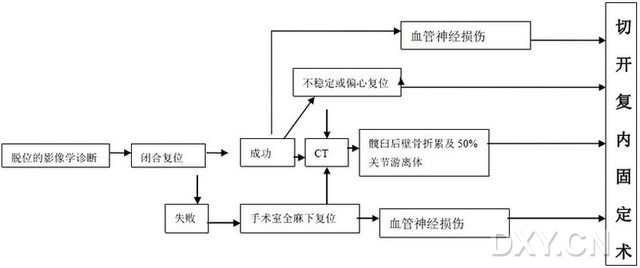 在道路交通意外中,創(chuàng)傷性髖關(guān)節(jié)骨折脫位是一種較為常見的高能量損傷。作為一種并不普通且相對(duì)復(fù)雜的損傷,治療起來通常較為棘手,位置深在,解剖關(guān)系及手術(shù)入路復(fù)雜,對(duì)很多骨科醫(yī)師都是一種挑戰(zhàn)。同時(shí)影響手術(shù)效果的因素也很多,如傷后與手術(shù)的間隔時(shí)間、術(shù)者的經(jīng)驗(yàn)、骨折類型等,雖然已經(jīng)有多位學(xué)者報(bào)道了良好的術(shù)后效果,但目前仍沒有長(zhǎng)期臨床療效及影像結(jié)果的研究報(bào)道。來自希臘Ioannina 大學(xué)醫(yī)學(xué)院的Gregorios I. Mitsionis,, Marios 等學(xué)者對(duì)髖關(guān)節(jié)后脫位合并髖臼后壁骨折的病例進(jìn)行手術(shù)治療,并進(jìn)行了長(zhǎng)達(dá)15-23 年 (平均 18.5年) 的隨訪評(píng)估研究。研究結(jié)果發(fā)表在2012年3月的JOT雜志上。研究結(jié)果顯示:手術(shù)治療髖關(guān)節(jié)后脫位合并髖臼后壁骨折,長(zhǎng)期臨床轉(zhuǎn)歸及影像結(jié)局主要取決于良好的復(fù)位。 研究嚴(yán)格納入了1983—1991年共19例髖關(guān)節(jié)后脫位合并髖臼后壁骨折的病例。具體診治流程見圖-1 患者初始影像數(shù)據(jù)采集包括:骨盆正側(cè)位片,骨盆雙側(cè)45度斜位片(Judet位),層厚為3mm的患側(cè)髖部CT,骨折分型采用Judet 和Letournel分型系統(tǒng)。手術(shù)后立即進(jìn)行復(fù)位測(cè)量評(píng)級(jí):移位≤2mm評(píng)為解剖復(fù)位,移位在2-3mm之間為復(fù)位欠佳,移位≥3mm為復(fù)位差。同時(shí)從1987年開始,所有術(shù)后患者均口服吲哚美辛預(yù)防異位骨化。 接下來,研究人員應(yīng)用以下評(píng)估系統(tǒng)對(duì)多個(gè)指標(biāo)進(jìn)行了評(píng)價(jià): (1) Brooker評(píng)分系統(tǒng)評(píng)估髖臼骨折術(shù)后異位骨化的程度; (2) 平片及Steinberg分級(jí)系統(tǒng)評(píng)估股骨頭壞死; (3) 骨盆正側(cè)位片以及Judet位片評(píng)估可能發(fā)生的髖關(guān)節(jié)骨關(guān)節(jié)炎(后期評(píng)估時(shí)使用); (4) 患者對(duì)其行走能力及疼痛程度的滿意度。 統(tǒng)計(jì)數(shù)據(jù)結(jié)果見下表1-4: 表 1 年齡段分布 表-2 終末隨訪時(shí)根據(jù)復(fù)位情況進(jìn)行的影像和臨床結(jié)果評(píng)估 表 3 終末隨訪時(shí)的影像和臨床結(jié)果 表-4 異位骨化的發(fā)生演變 結(jié)果發(fā)現(xiàn),在長(zhǎng)期的隨訪研究中,影像學(xué)結(jié)局及臨床轉(zhuǎn)歸二者和骨折復(fù)位程度直接相關(guān),如果復(fù)位后骨折移位≤2mm,那么患者的影像學(xué)結(jié)局及臨床轉(zhuǎn)歸達(dá)到“較好”和“好”的比例分別高達(dá)100% 和87.50%。由此可見,髖關(guān)節(jié)后脫位合并后壁骨折其手術(shù)治療后的長(zhǎng)期臨床轉(zhuǎn)歸主要取決于術(shù)中良好的復(fù)位。